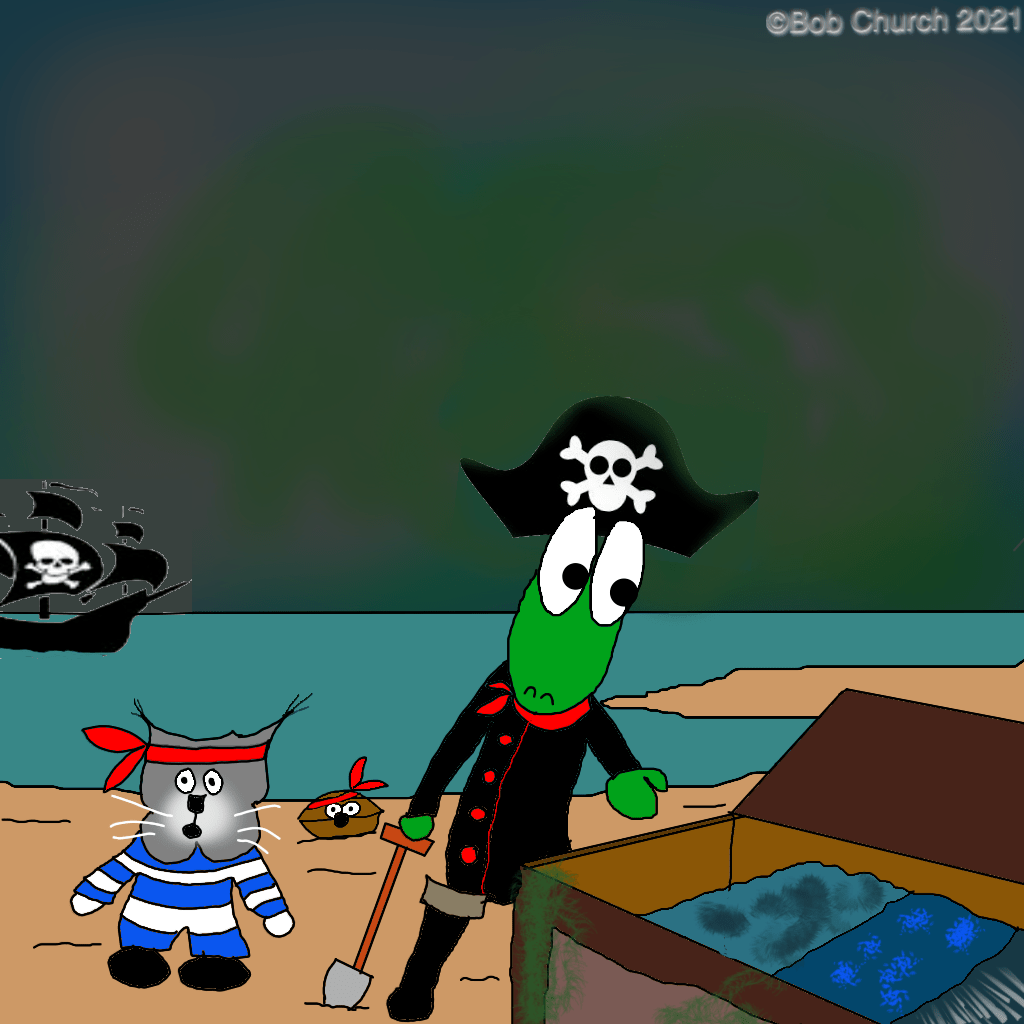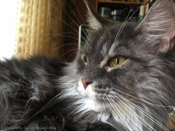 Other than the ‘toon and the above picture of the container with the pieces for the remaining blocks, all the pictures in this post are from a long time ago. So I decided to use a Baxter photo from 2018, the last year in which I worked on the Stormy Seas blocks.