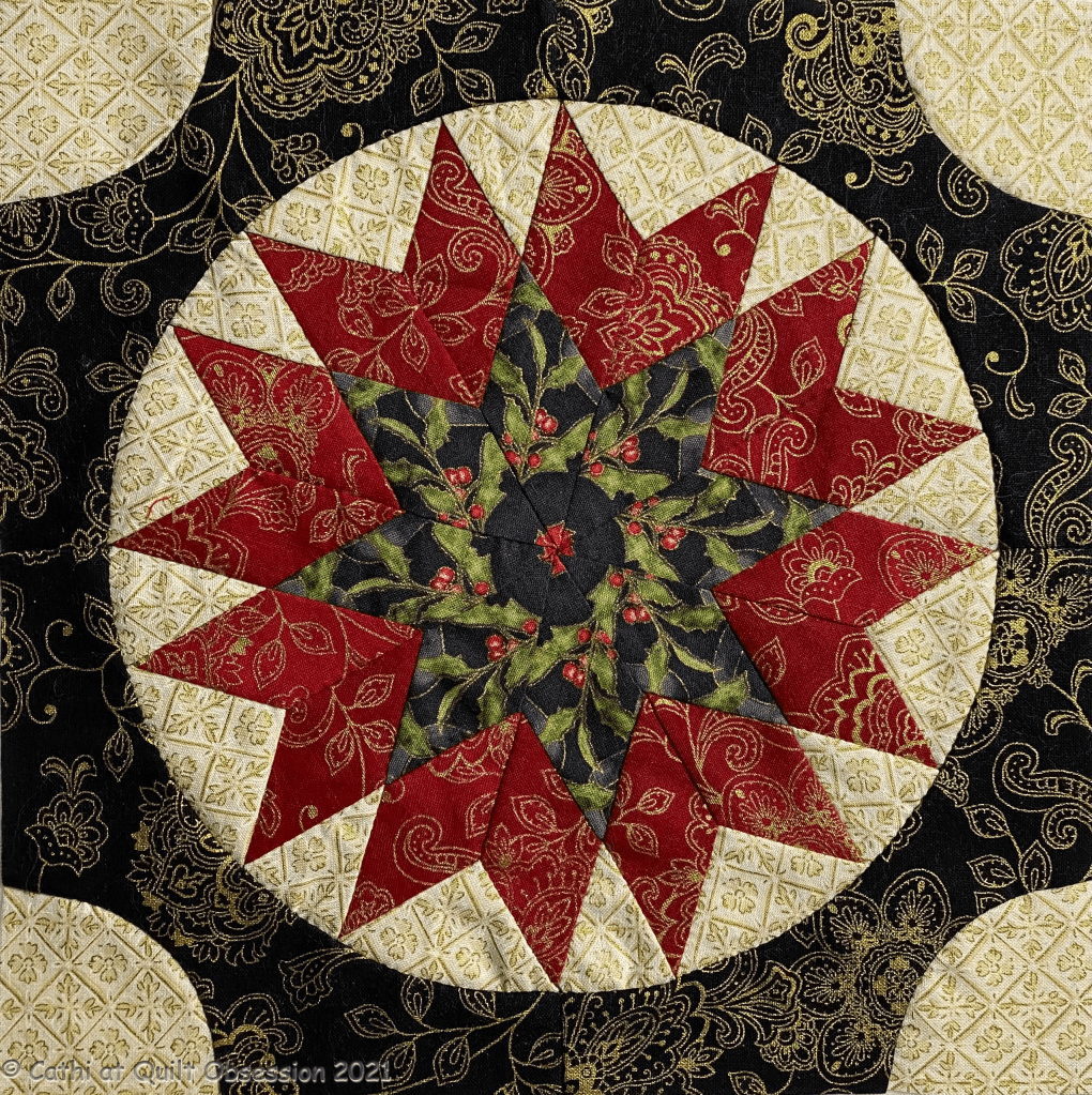 However, two more Christmas Fireworks blocks are done, both the off kilter or not centred stars. First this one, which I think may be one of my favourites – so far, that is.