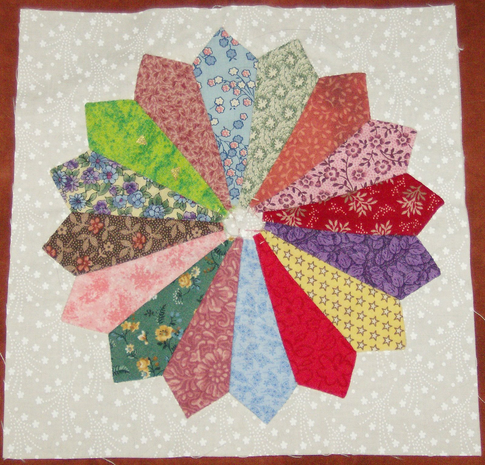 This is the back and it shows the basting following along the lines of the shapes that are printed on the wrong side of the background.