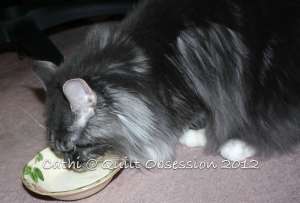 When we have cereal in the morning, Baxter loves to have a bit of the milk. He’s not shy about asking for his share, either. If we’re not quick enough, a paw is quite likely to reach up and try to snag our spoons just to remind us that he’s waiting.