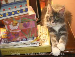 What’s that? It’s the stack of fabrics I printed over the weekend for the Scrappy Star, Twinkling Stars, Summer Picnic Dish, Harpsichord and Joseph’s Coat quilts. The last couple of weeks I’ve been identifying the size I want certain projects to finish at. WIth the size of each determined, it took only a few minutes to figure out what I needed to print to reach that goal. Sometimes I print only a few of each shape for a couple of blocks until I’m sure I want to make it into a quilt. Once that decision is made, I prefer to get everything printed at once and get the shapes cut and into a box ready to stitch such as I’ve done for the Stormy Seas quilt.