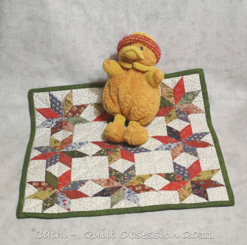 Because it was such a beautiful day on Monday, we took Scrappy Star out to the roof garden to photograph. It’s growing and is now 24″ across. It will be at least twice that width before I’ll stop adding rounds. I needed more of the squares, which was another reason for all the printing that was done on the weekend.