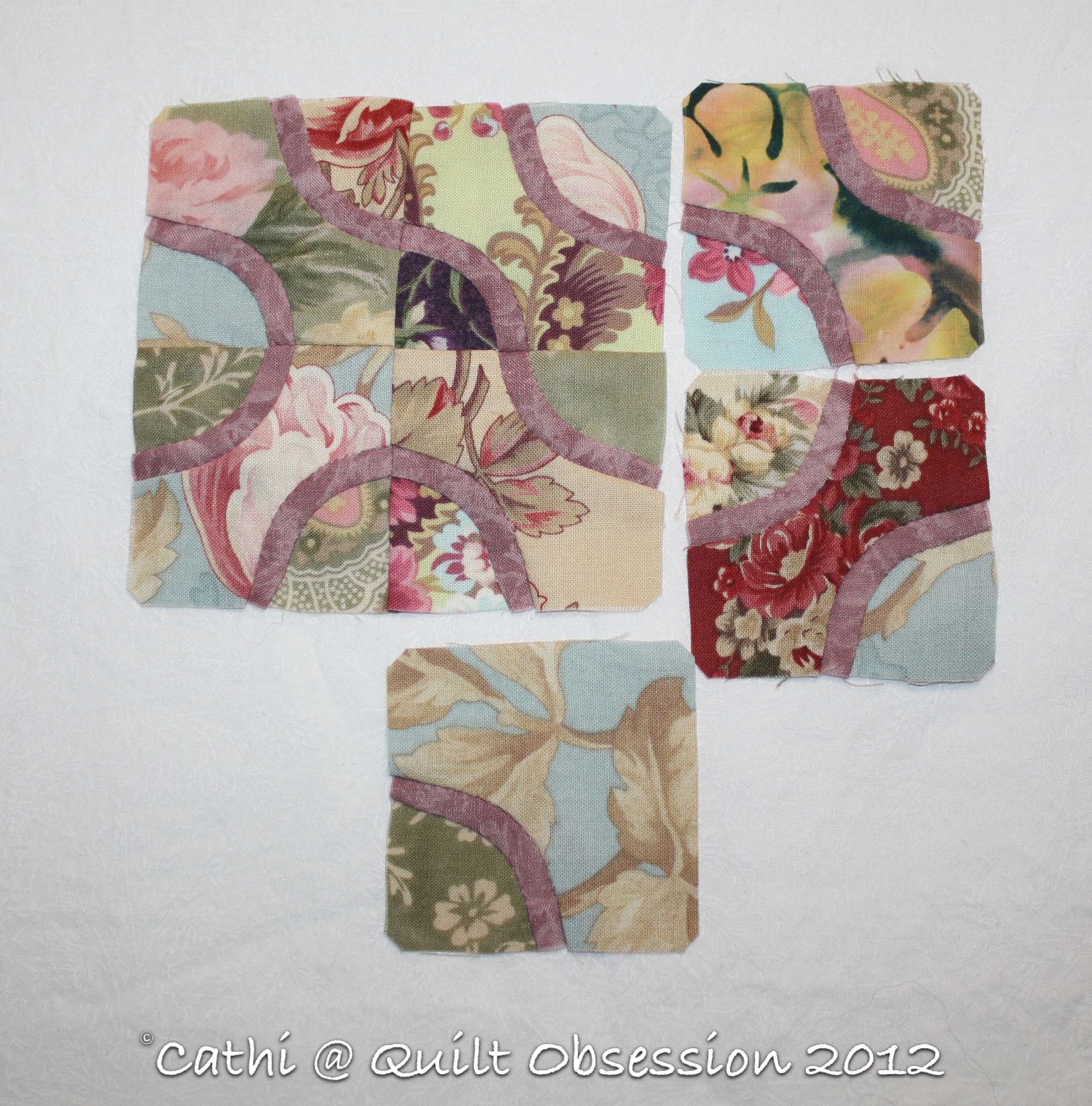 It’s been ages since I worked with the shabby chic fabrics, so I took the opportunity to start playing. I made four blocks last night and joined them.