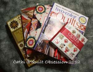 Almost all the shapes for the ’30s Drunkard’s Path blocks are cut now. Doesn’t this look inviting? I love having everything for a quilt so well organized. Now, when I want to stitch some of these little shapes, I just need to pick up the book box and everything I need is there. Well, not the thread – but in this case I’m using one colour, an heirloom cream thread, and it’s in the end table drawer just waiting. I have to stitch a few more of the blocks to make room in the book box for the remaining shapes.