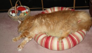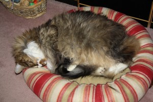 The boys were very much in lounge mode today, as they were getting over the past 17 days of Olympic activity. I think Smudge’s pose almost qualifies as one of the “where is his head” photos.