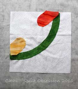 In this picture you can see how closely my applique stitches are right on the line of the design. It also shows the lines of another shape, which I chose not to add to this part of my applique block.