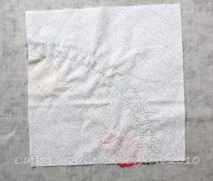 This is the back and it shows the basting following along the lines of the shapes that are printed on the wrong side of the background.