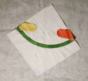 My favourite method of applique is backbasting as it makes it so easy to get perfect placement with no overlay or pins or freezer paper. Just needle, thread and fabric. With Inklingo printing the lines on the back of the fabric, it makes backbasting a breeze. You could also print your lines on the front of the background fabric, and use that for placement if desired. Or print the shapes only on the applique fabric with or without turn-under allowance. All the options are there. I chose what size my block would be. The picture I showed is one-quarter of a block that will finish at 16″. My plan is to add a small border, and have a small table topper. With a wide-format printer, one could print larger backgrounds. I love the idea of having the choice regarding what size my finished blocks will be.