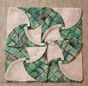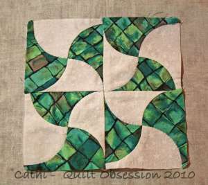 I also started making a little quilt I’m calling Clams on the Half Shell with half and quarter clamshells using the Inklingo 3-inch clamshell edges collection. This little quilt will have half clamshells in the centre, a plain first border, a second border made up with quarter clamshells and finally, another plain border. The half clamshells are as much fun to put together as the full clamshells and the quarter clamshells are very quick to stitch. In the picture below there’s only one block of quarter clamshells put together so far, but a few of the half clamshells. To see some other examples of quilts that could be made with half clamshells, go to Linda’s blog post here.