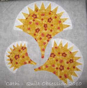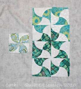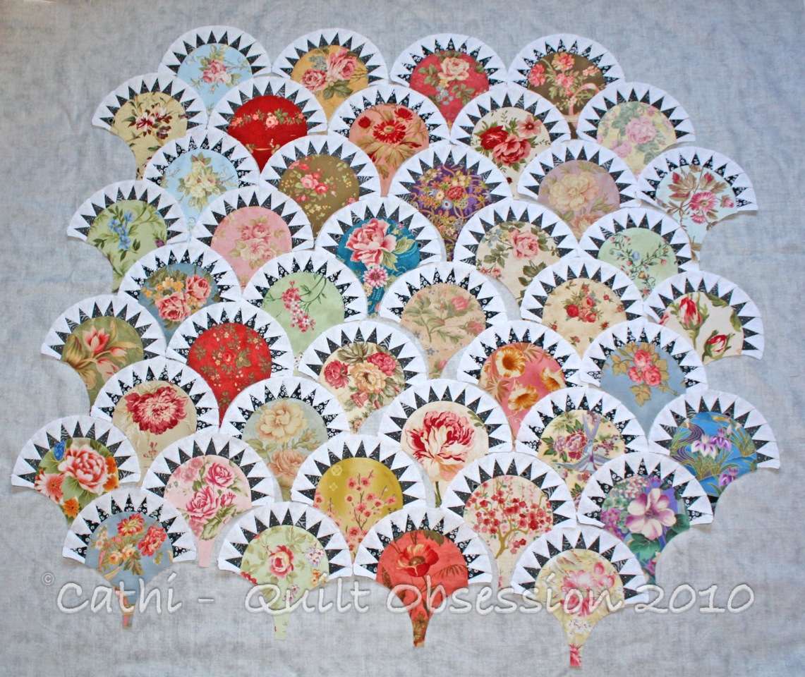 When I pulled out the storage container with the Oriental prints and batiks to choose the fabrics in this, I also hauled out the container with striped and directional fabrics. I have a feeling fussy cutting some stripes for this block will be the next thing I play with, although I’m also very tempted to do something with shabby chic fabrics.