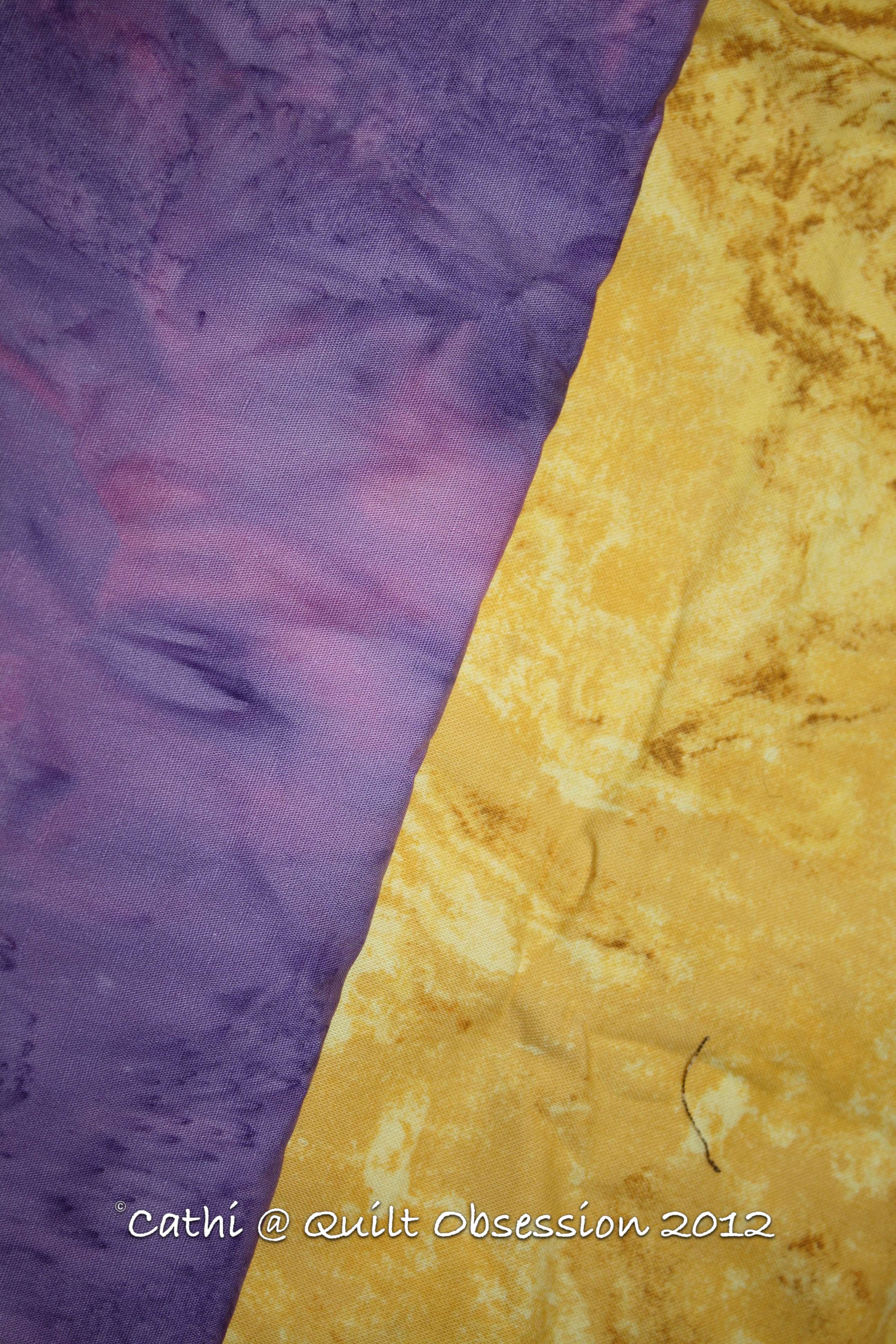 While almost all my stitching time on the weekend was spent working on the red and white Feathered Star/Sunflower quilt top, some time was spent auditioning possible partners for the purple batik. First I had to try a white on white with it.