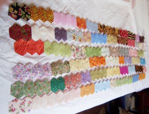 This weekend I hope to make the stars for Butterfly Stars and get at least another 12 or 16 butterfly hexagons ready. Whirling Arches blocks are calling to me too — I’d love to get another one of those blocks made and, of course, work on Red Delicious apple cores.