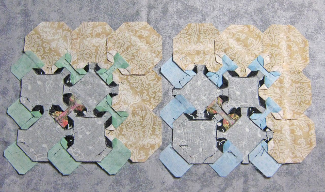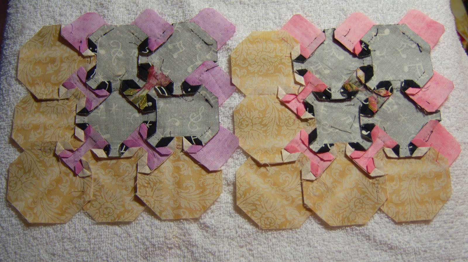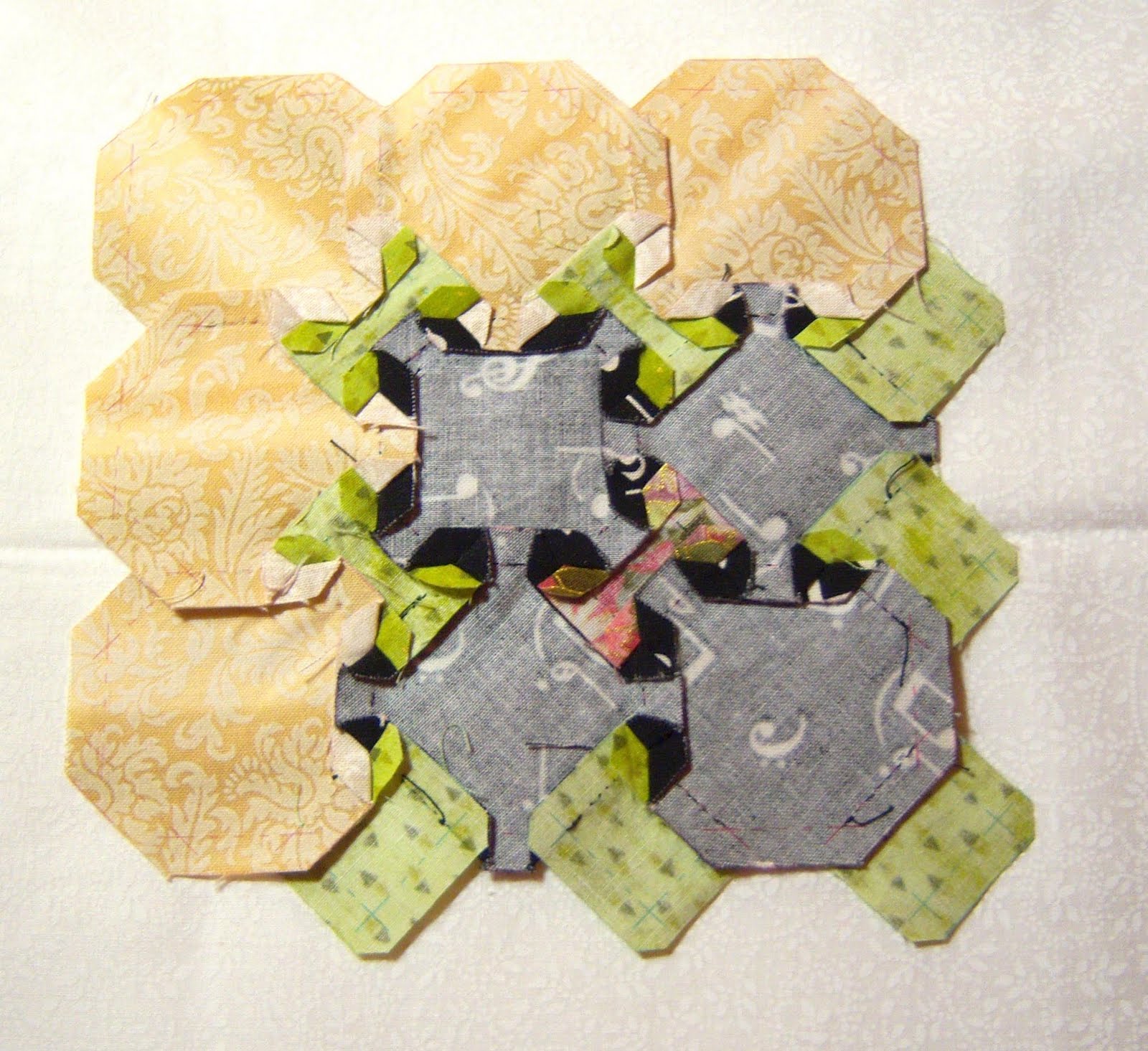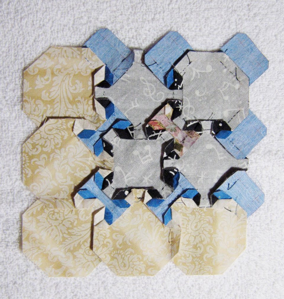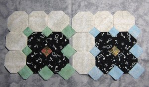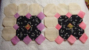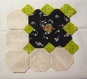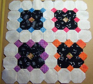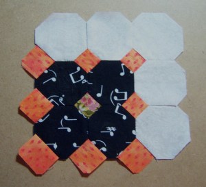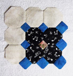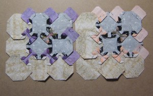 Finally, I’ve got a POTC block that has purple in it surrounded with the cream hexagons and the purple squares. There are a lot of blocks with purple in them but I seem to have been saving them. I think I wanted to see that the purple worked with some of the others first.