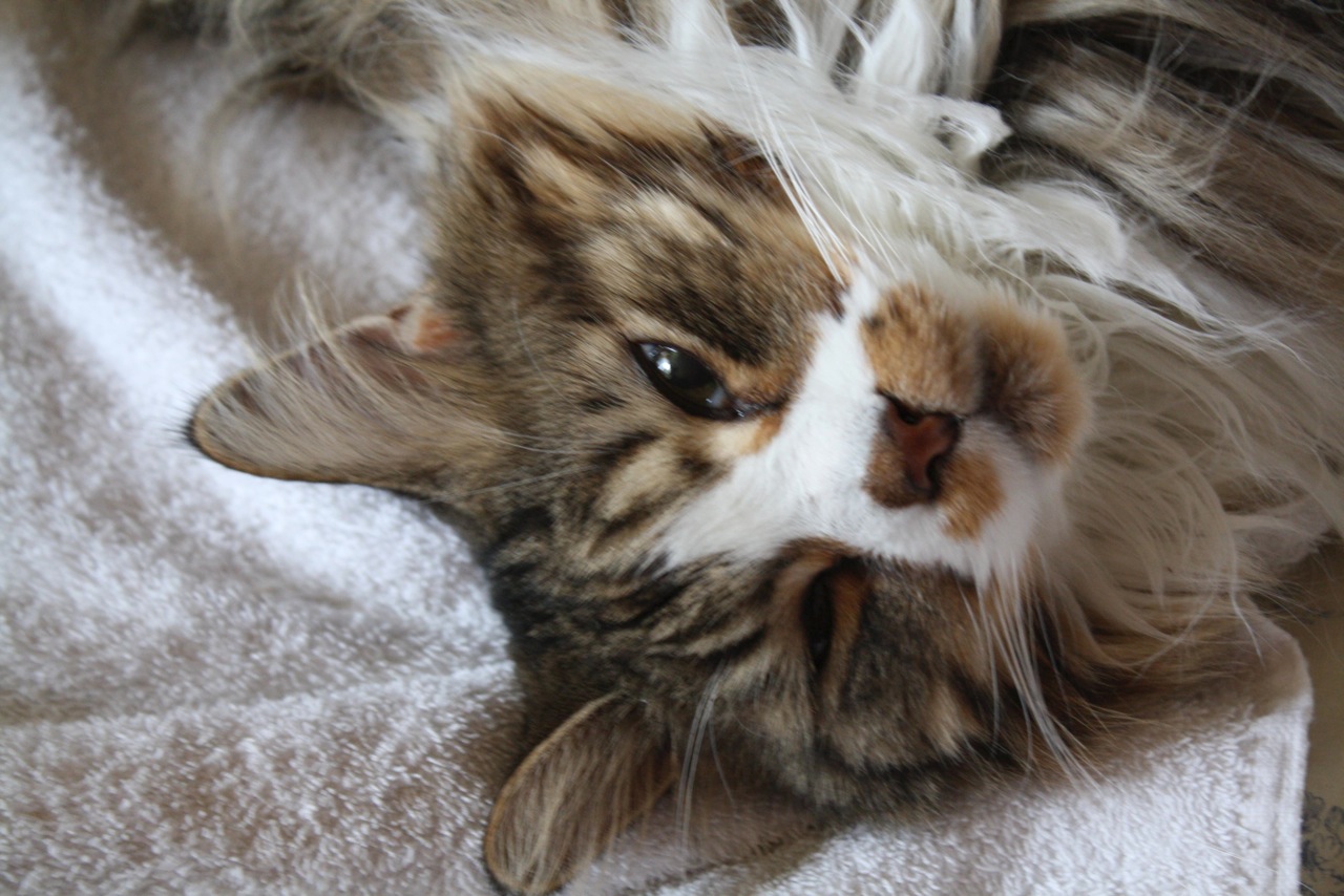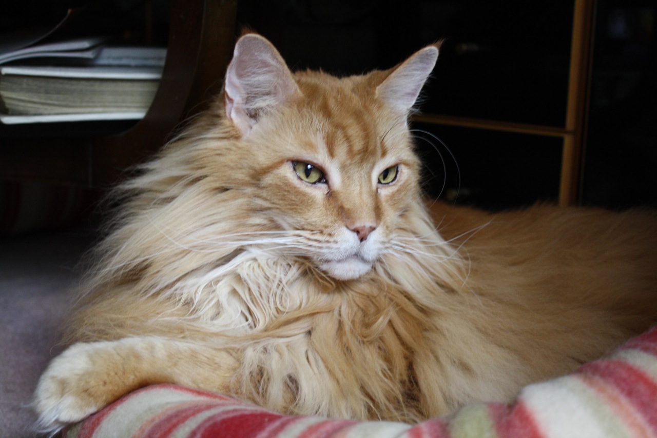 It was sunny but a bit chilly on the weekend. The cats were cozy. Lester in a kitty bed.