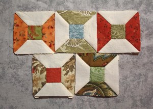 Charm packs seem to hold an endless fascination for me. Perhaps it’s having a bit of every fabric in a line that I can mix and match with other fabrics. I do tend to totally mix them up and am doing that with the klosjes. There’s no rhyme or reason to my fabric choices for these.