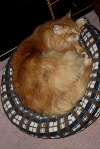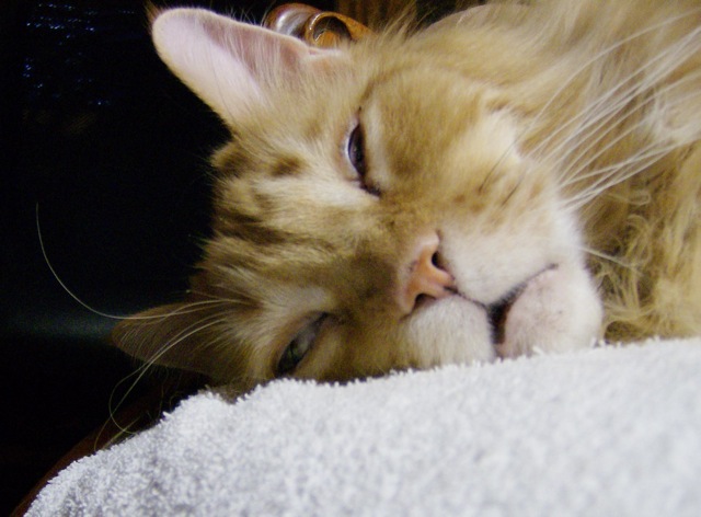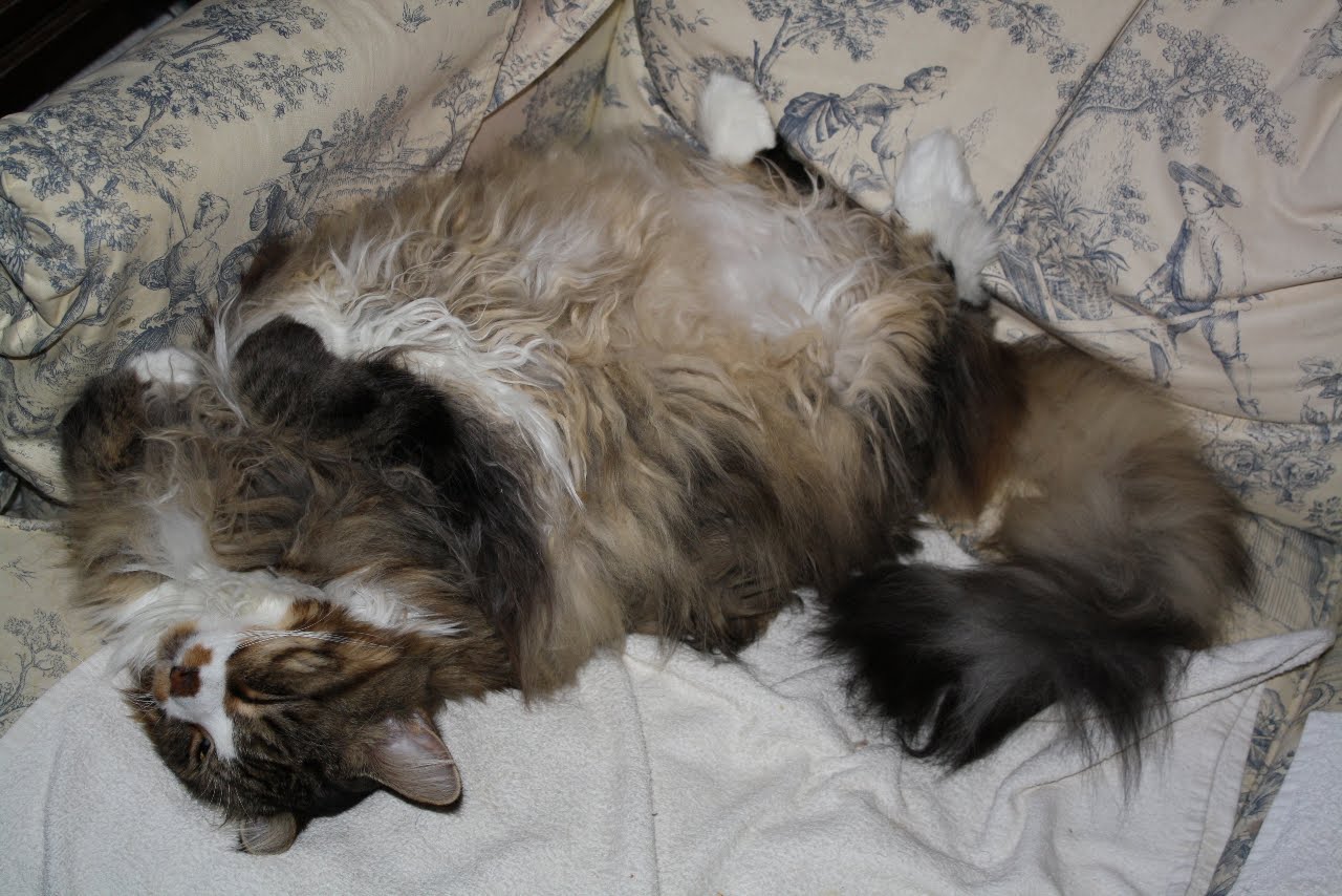 Baxter is very nocturnal. He tends to wake up around midnight and is awake and wanting to play until just before dawn. So during the late afternoon/early evening he finds a comfy spot and snoozes.