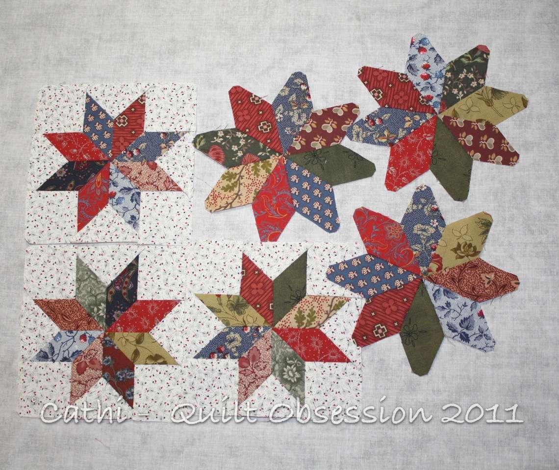 These stars are the beginning of a quilt requested by Mr. Q.O. He really likes the look of these reproduction fabrics, it seems. I’ve got a couple of ideas for setting these and once i get a dozen or so done I’ll start playing with that.