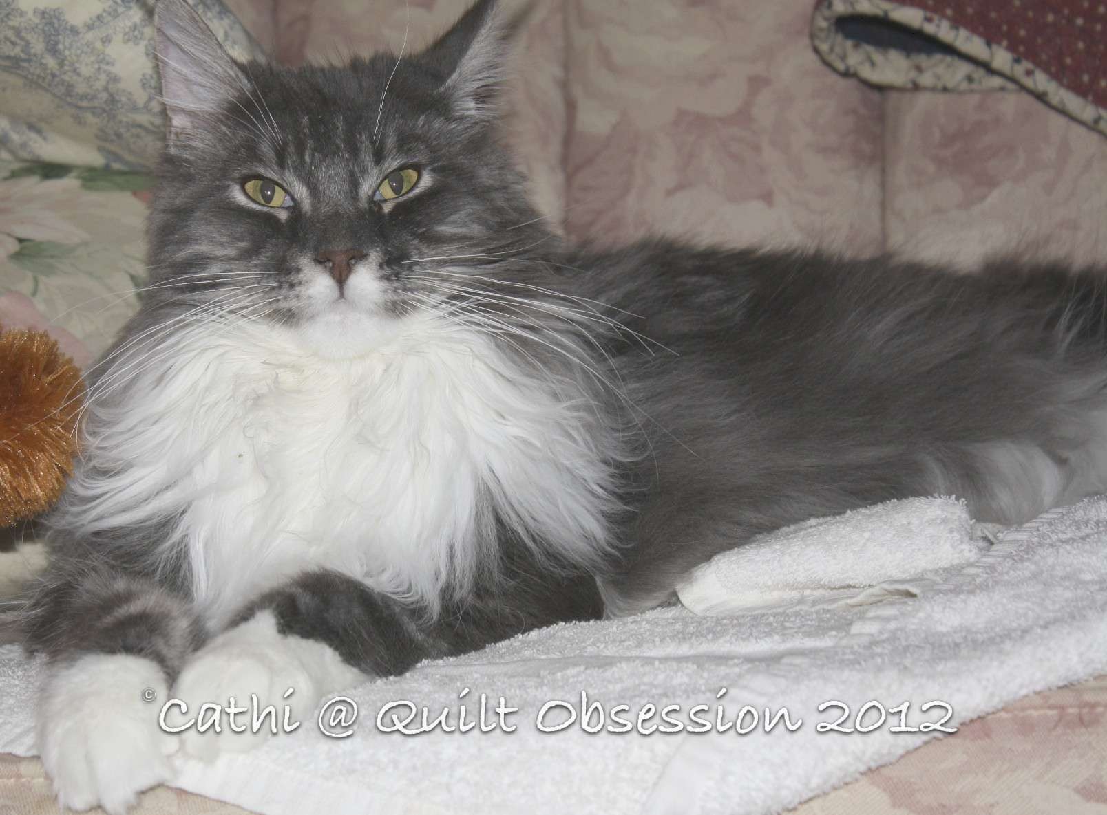 I’m still working away on the pieced border for the red and white quilt and, while I work on it, am thinking about another idea for a red and white quilt. The next one will be a small quilt though, I think. This red and white Feathered Star/Sunflower quilt is going to be rather large although I have sorted out how I will baste it. I’ll put it in the collapsible floor frame to baste it. No more crawling around on the floor with safety pins, not that that’s even an option with an inquisitive cat like Baxter around. I can just imagine what a nightmare that could be.