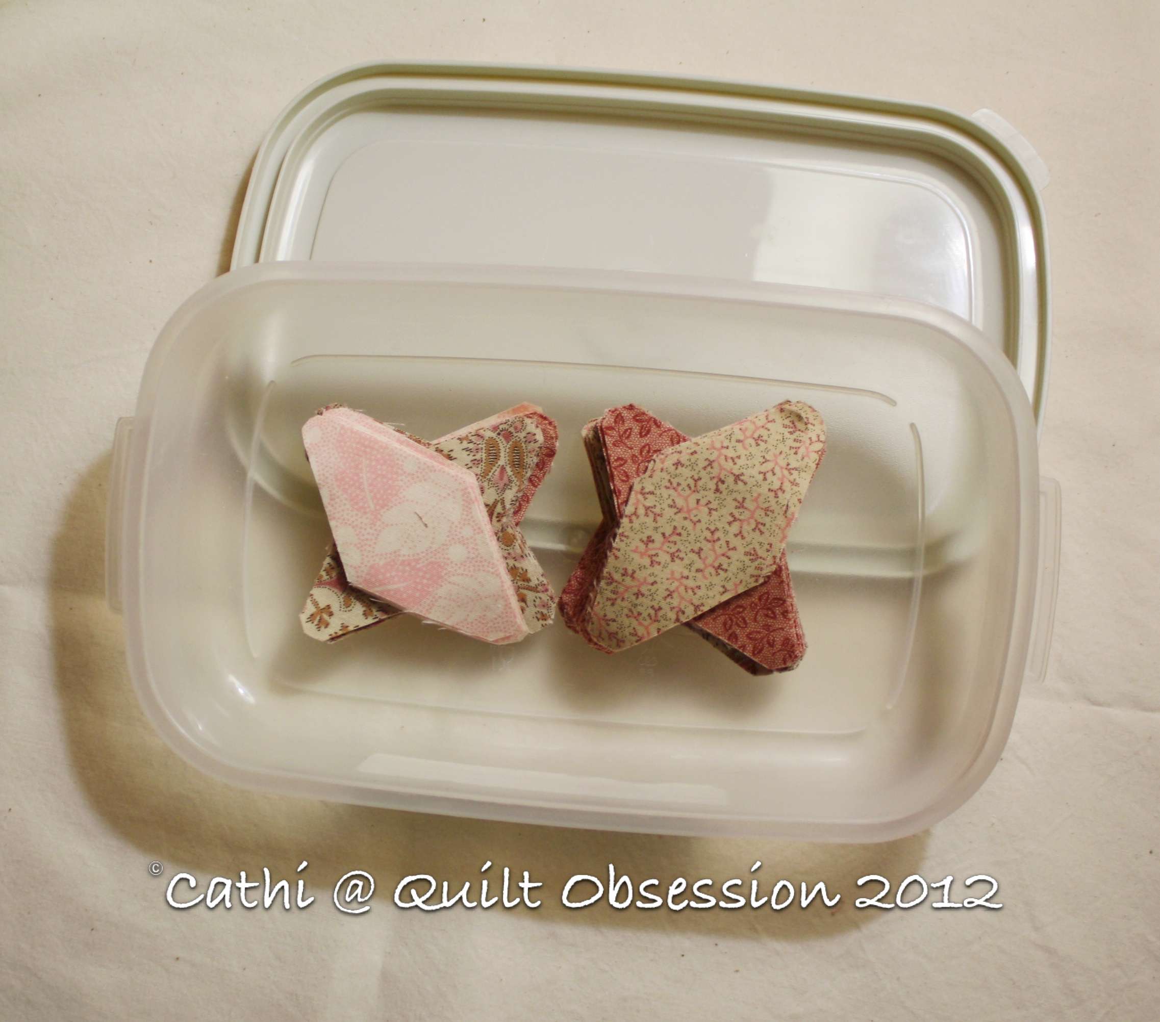 The box in which the pieces reside is almost empty. There are only 12 stars left to make and then I can free this box up for another project.
