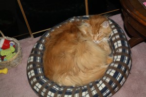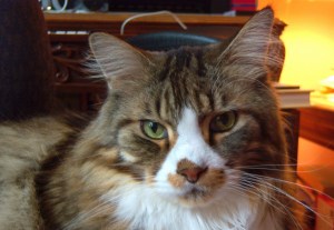 For the next 16 days I’m taking care of Winnie, an adorable looking little cat, for friends who have gone away to celebrate their 25th wedding anniversary. She is, however, one cranky cat!! She hisses when you put her food down for her, hisses if you try to pat her, just hisses a lot! I’ve known Winnie ever since our friends got her, about 14 years ago, and she has always been like this. She was a barn cat so I guess she’s basically feral. They live three floors above us, which makes it easy to run up and take care of her but I feel rather badly that she doesn’t want any attention at all. She just wants her food and water and that’s about it. Maybe I can get her used to a little attention during this time. That’s what I’m hoping.