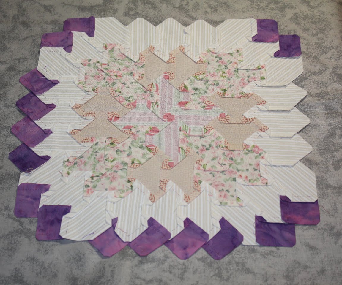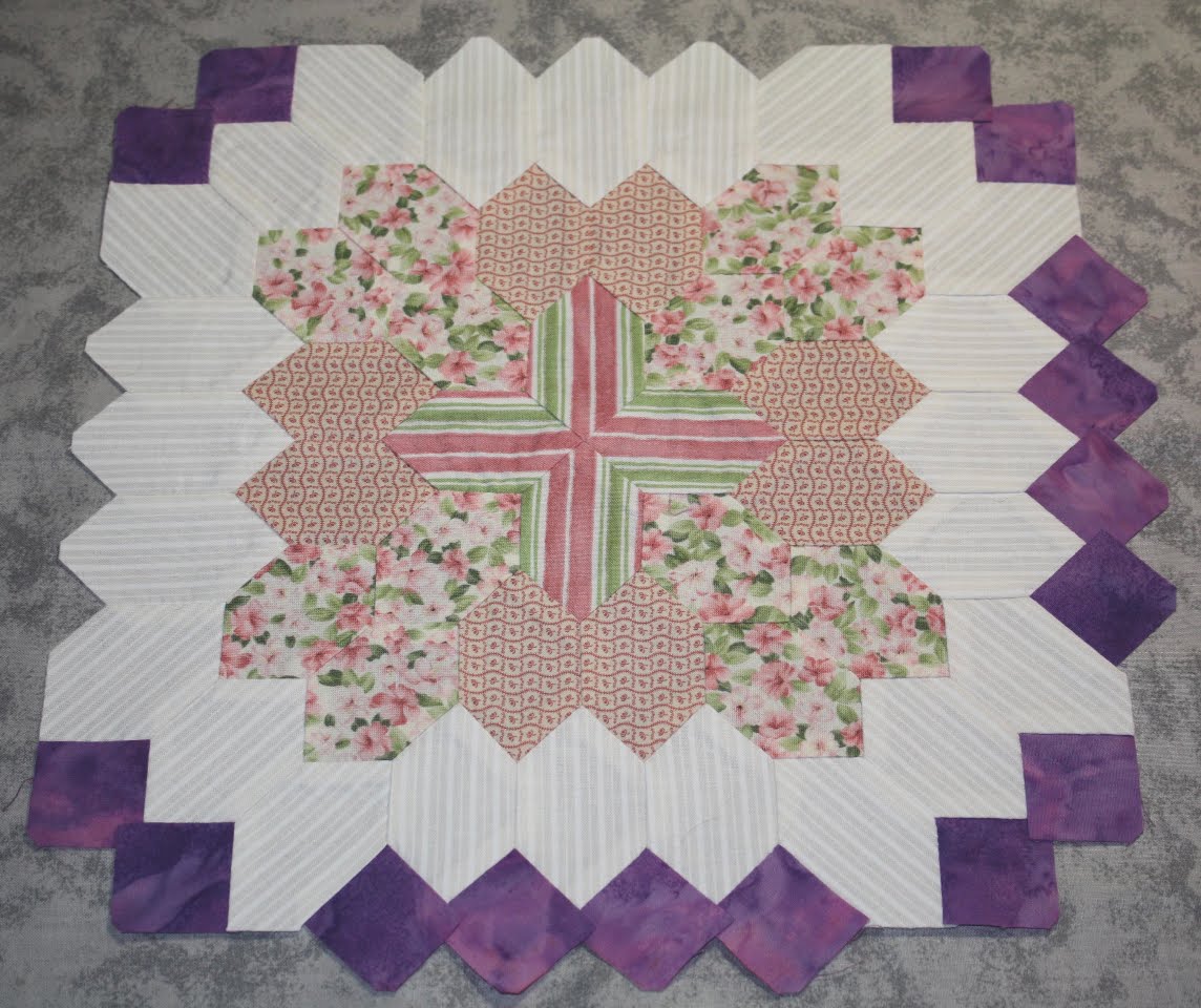 When looking at the blocks still requiring the surrounding cream hexagons, there was one that really stood out and I knew it wasn’t going to fit in with the others in the quilt. So I picked out some fabrics for another block and have now finished this one: