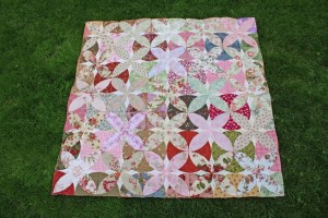 As Chintz Circles is entered in this week’s contest at Quilting Gallery (and you can go vote here), I thought it might be sort of fun to look back at the process of making it. The picture above was taken almost immediately after I finished stitching down the binding but before it was washed.