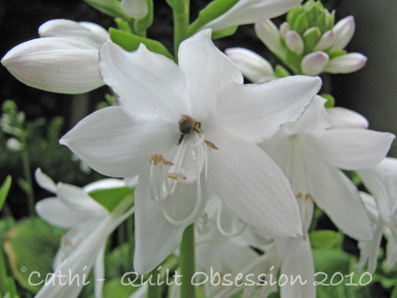 We noticed a bee fly into one of the hosta flowers and got this close-up. I think if you click on the photo to enlarge it, you’ll see the bee.