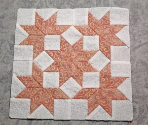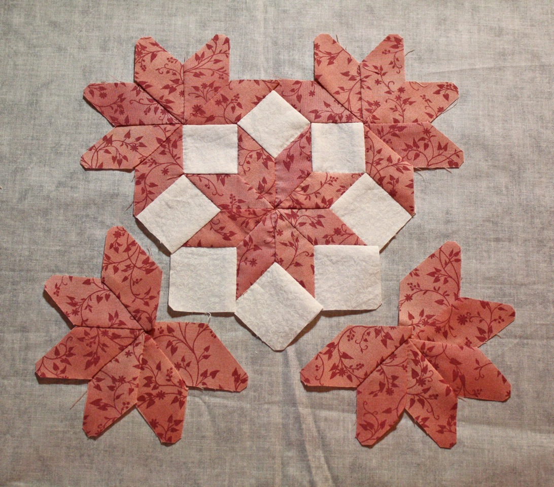 … is partially stitched. Once the middle star and the 4 partial stars are put together, it’s nothing but lots of lovely continuous stitching which makes it a much quicker block to put together than it may appear. I may get it finished over the weekend, but this is the weekend that I will be devoting pretty well entirely to quilting Chintz Circles. I don’t know if I’ll get it finished this weekend, but I’m going to try. I’d like to get the binding on and wash it before next weekend so that we can take it to be photographed.