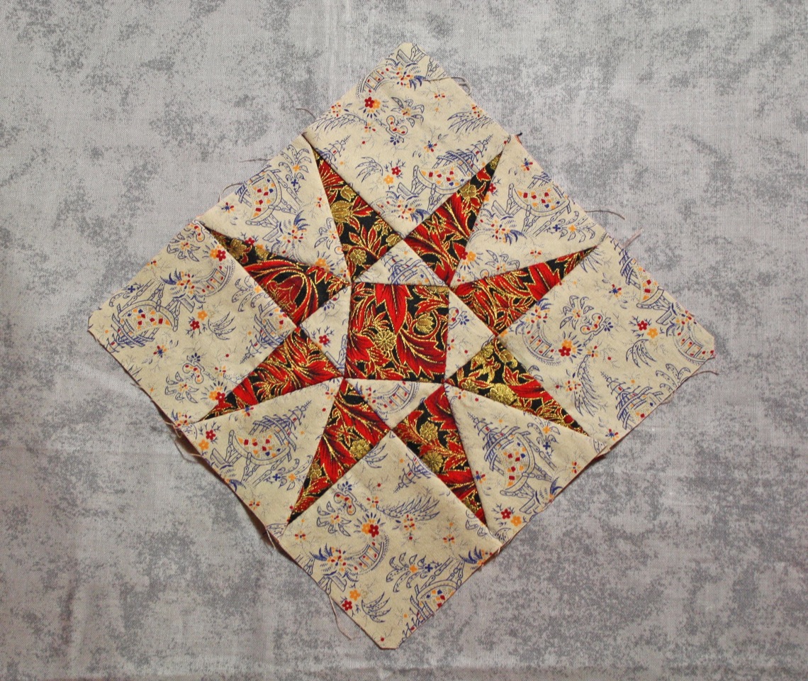 Nothing much quilt-related to show. My wrists have really flared up. The swelling is noticeable at this point and the pain is getting rather tiresome. However, I’m playing with an idea for a baby quilt, thinking of making a 12″ version of this block using some bright prints. If I decide to do this, I think it will only take 6 blocks and a small border so could be made relatively quickly. I’d love to be able to pull the fabrics I want to use, but that’s going to have to wait till this flare-up has ended. At least I can plan.