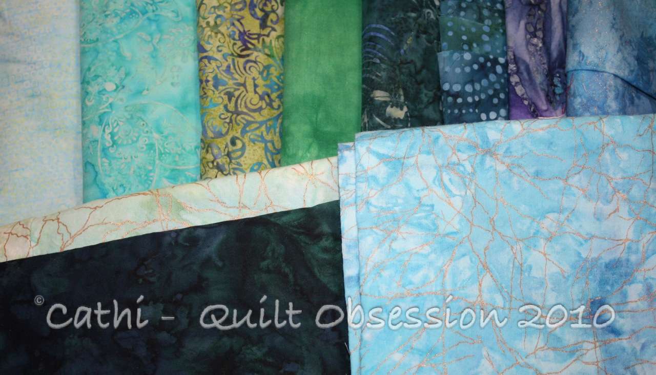 Blue fabrics, that is. All I think I need to add to this group is some white and I may have the beginnings of a new project in mind.