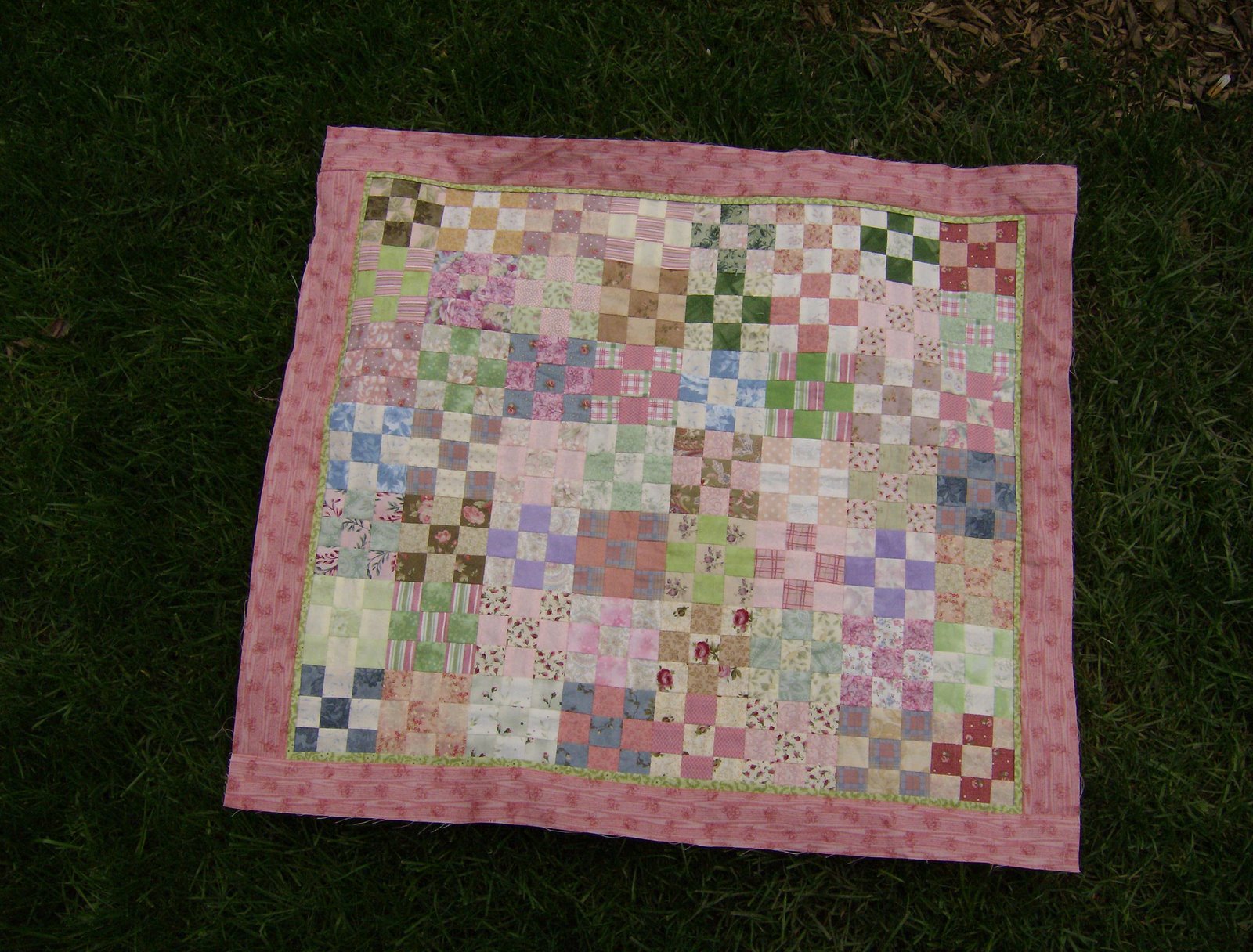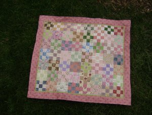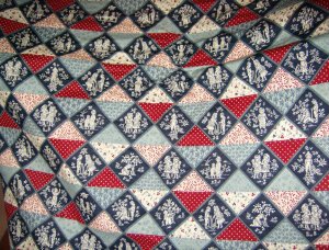 This is the back and it shows the basting following along the lines of the shapes that are printed on the wrong side of the background.