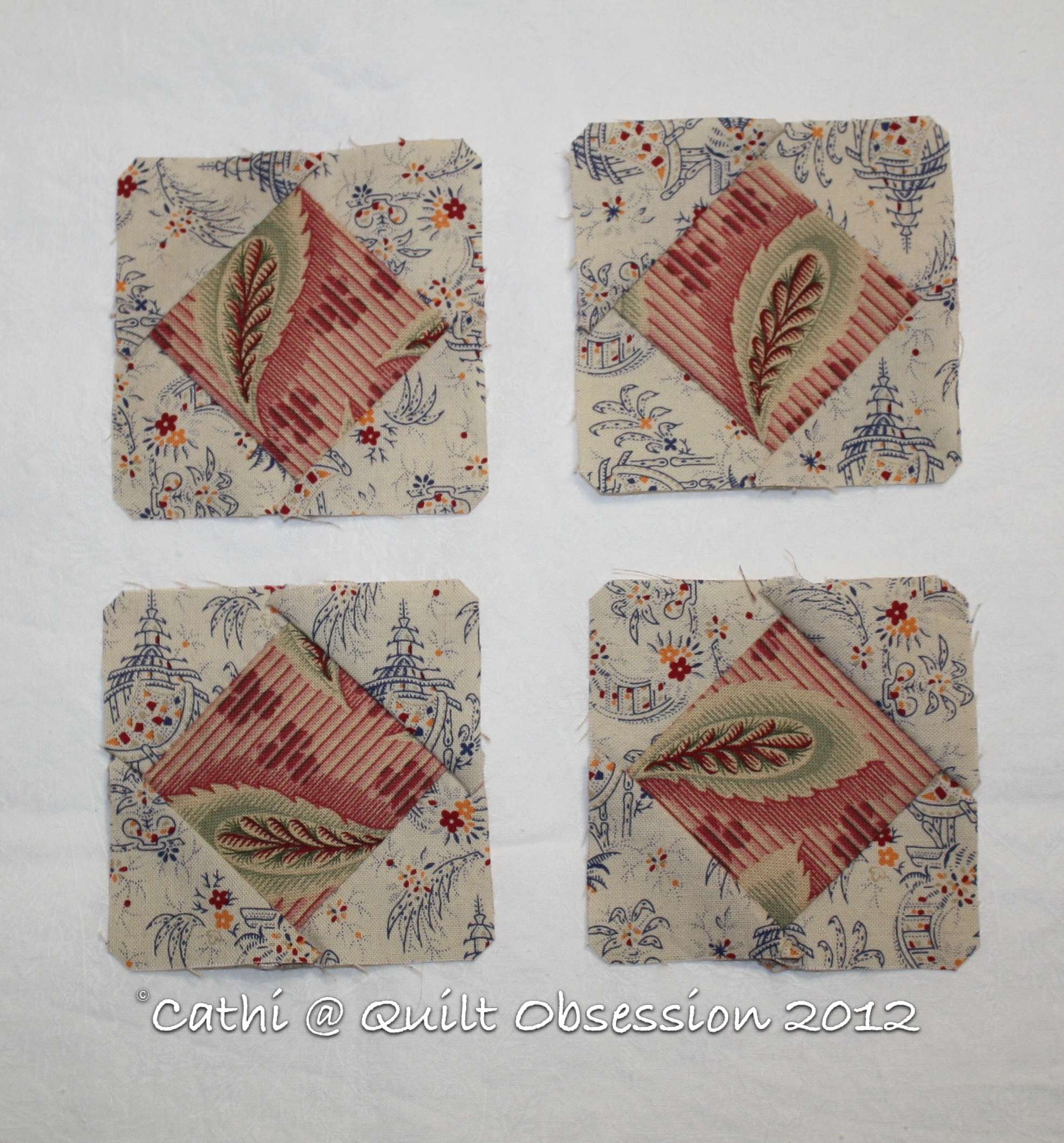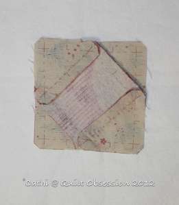 Four little 2.25″ blocks are all I have to show for yesterday’s stitching. I wasn’t happy with the corners of one of the pieced borders on Scrappy Star. I knew I was going to have to come up with a different idea. It will involve a little unstitching, but I know I’ll be much happier with the result.