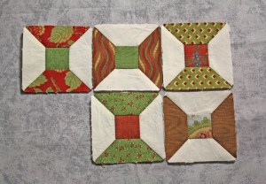 I couldn’t resist making a couple more spools in yet another size. These finish at 3 3/8″. I still prefer the small ones but think I’ll probably end up making a quilt that incorporates all three sizes, although the small ones will be the predominant ones.