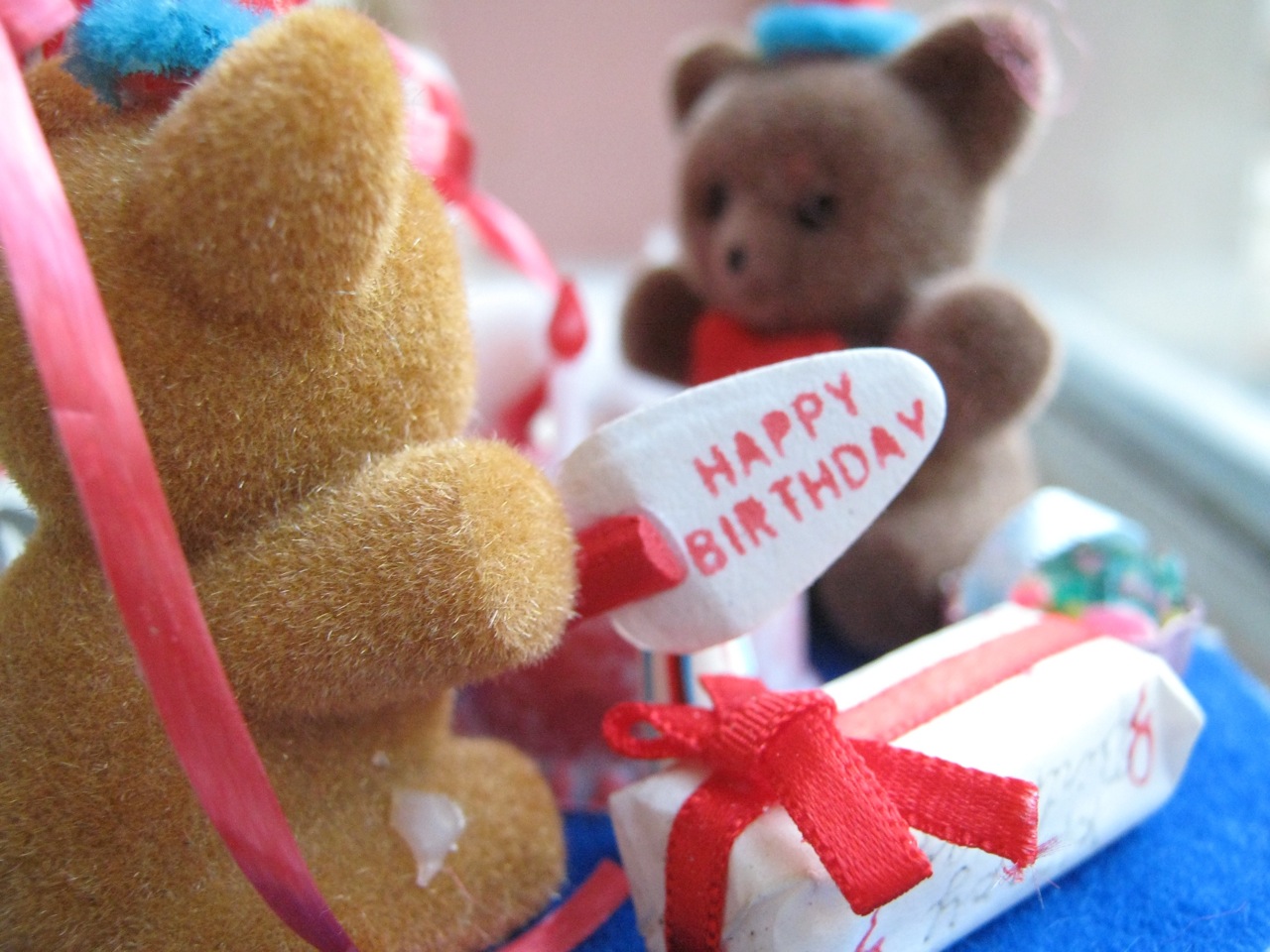And here’s one of the little teddy bears who had been into the cake, it seems. He’s given away by the icing on his fur.