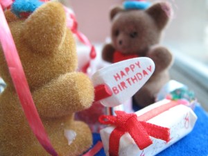 It was Mr. Q.O.’s birthday yesterday. About ten years ago, we found this little music box in a store called “The Elegant Garage Sale.” When wound up, it plays “Happy Birthday.” Once we saw the teddy bears in it, there was no question it was coming home with us. It’s now our tradition to wind it up and play it on our birthdays.