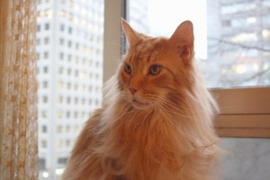 Lester is ready for spring. He was stretched out on the windowsill, although there’s not much to watch out on the roof garden yet.
