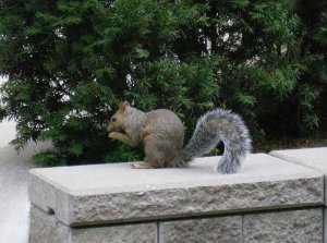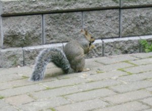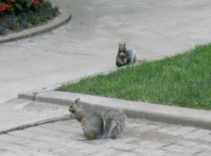 Yesterday was very drab and grey here. It rained on and off all day and evening. At one point yesterday afternoon I looked out (we are so lucky to have an apartment facing out on to the roof garden) and what did I see? Two squirrels cavorting on the lounge chairs! Building management puts out lounge chairs for the use of the residents every year. As yesterday wasn’t a day that many of us would be out there, I guess the squirrels figured they’d have fun and use the chairs!