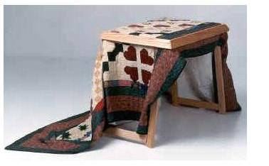 See this picture?  This wonderful quilt frame?  It’s a fabulous solid oak quilt frame that does away with the necessity of basting, folds up easily for storage and is a great asset for any hand quilter!