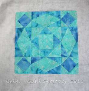This block has one of my favourite fabrics in it, the green/blue batik.