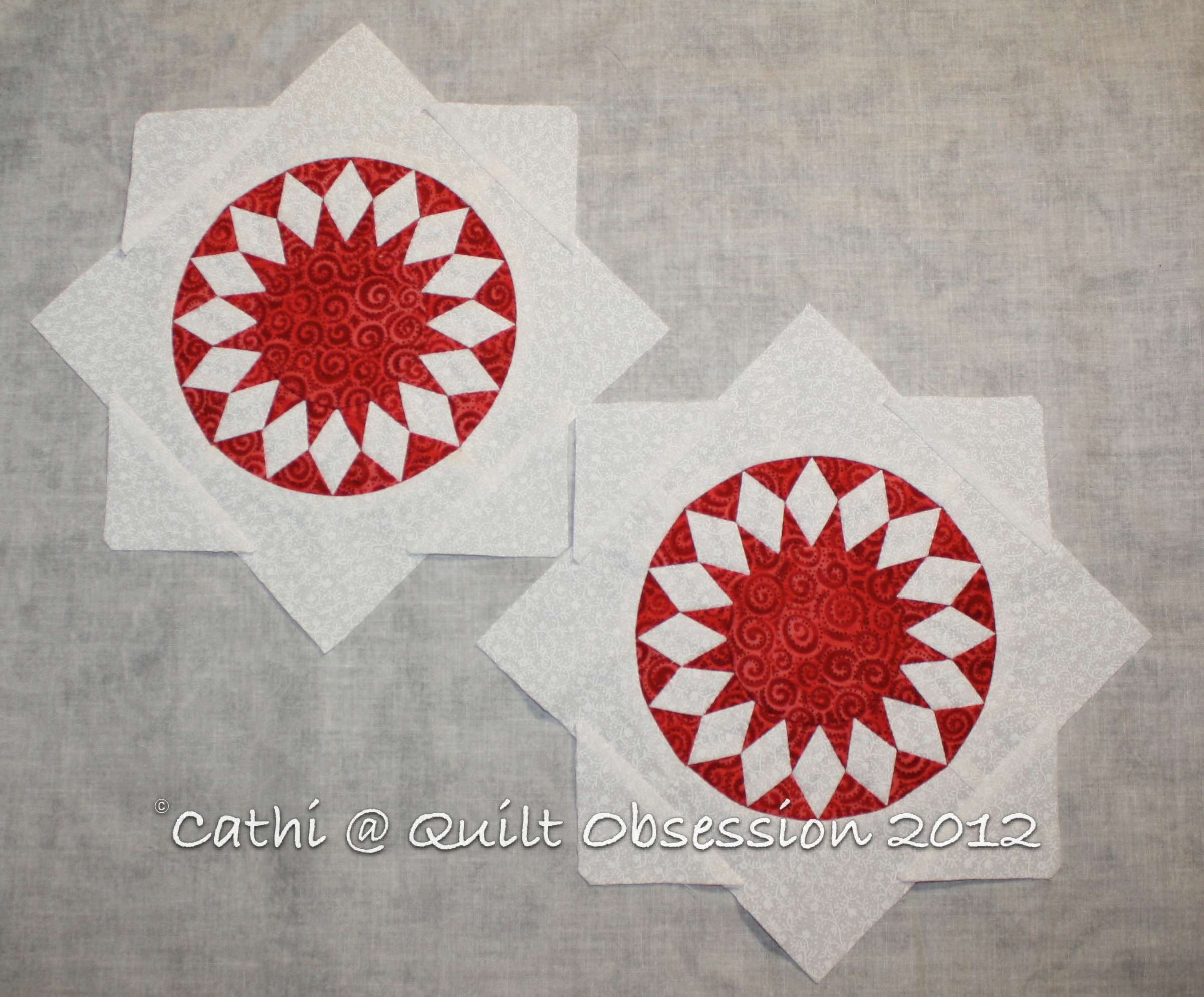 The last two centres for the red and white Feathered Star/Sunflower blocks are done. Now it’s a matter of finishing the Feathered Star blocks themselves, adding them to those already done and starting on the borders.