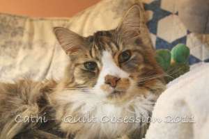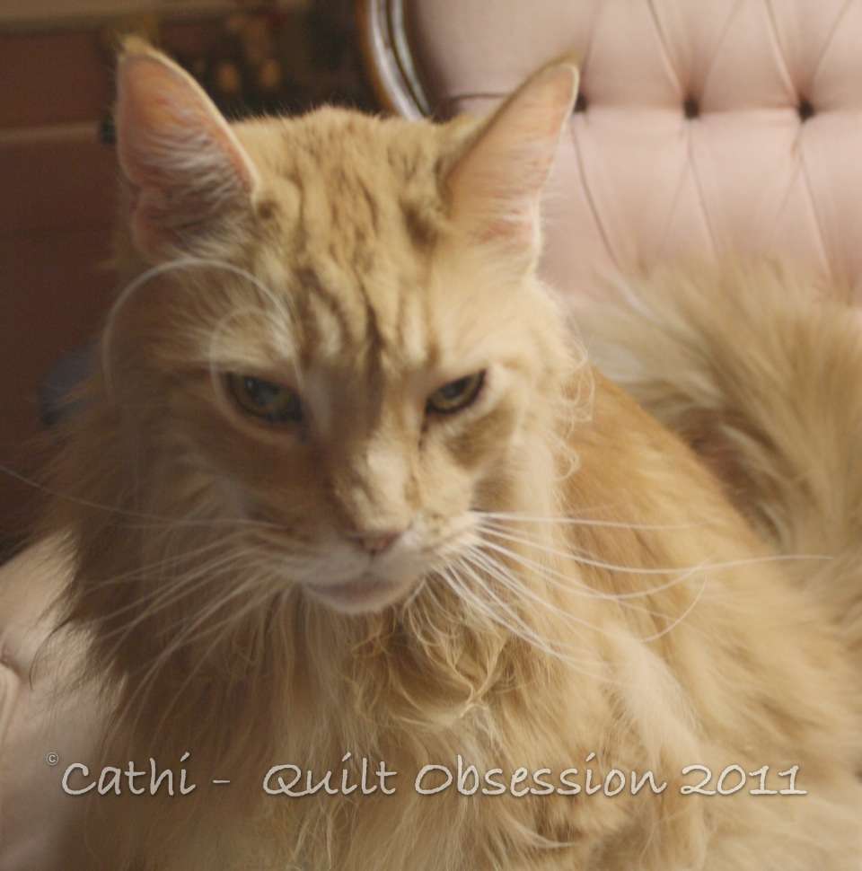 Smudge was not so impressed until I sat down on the couch and he could drape himself over my legs while I started to stitch. Then he was happy.
