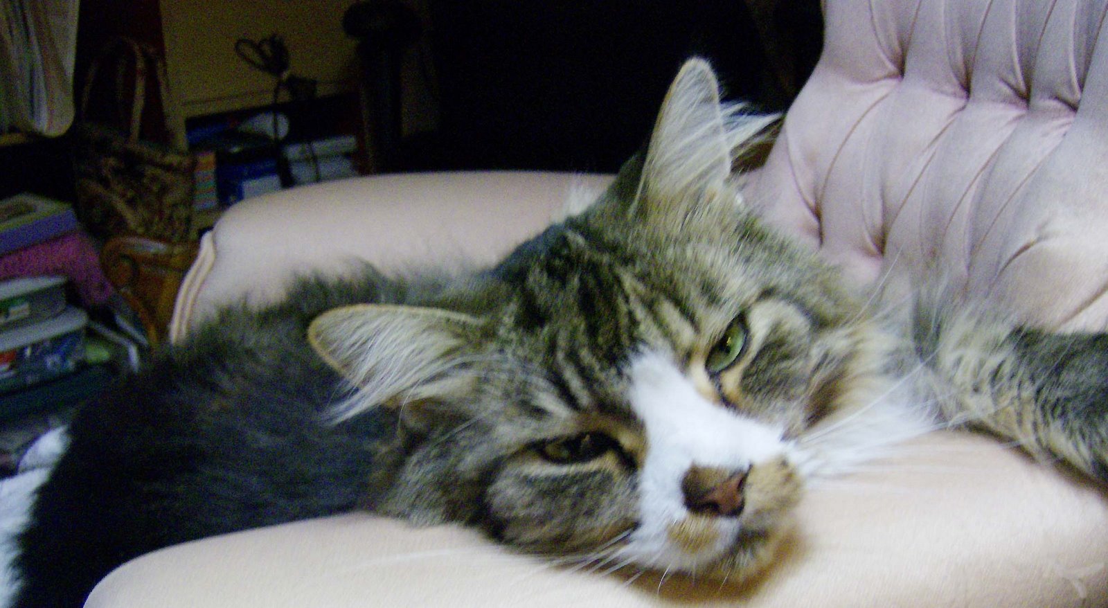 The kitties are still enjoying their new beds. While they’re quite content to use either one of the two beds, Wednesday they seemed to be taking turns in the one nearest the toy basket. First Lester, showing that he really does like to curl up in there: