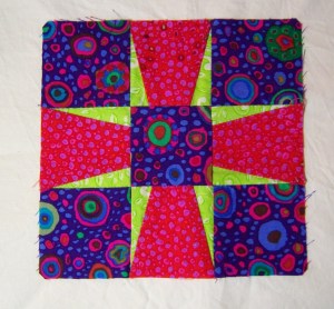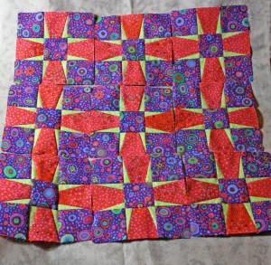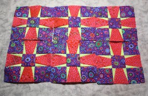 And a few more of the first block that will be in the Jewels at Night table runner. But that’s about it. The ideas were flying fast and furious though and my notebook has a lot of notes for the future, including a setting for the Tropical Punch blocks.