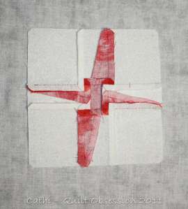 Because it was such a beautiful day on Monday, we took Scrappy Star out to the roof garden to photograph. It’s growing and is now 24″ across. It will be at least twice that width before I’ll stop adding rounds. I needed more of the squares, which was another reason for all the printing that was done on the weekend.