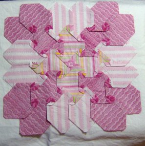 Nothing much quilt-related to show. My wrists have really flared up. The swelling is noticeable at this point and the pain is getting rather tiresome. However, I’m playing with an idea for a baby quilt, thinking of making a 12″ version of this block using some bright prints. If I decide to do this, I think it will only take 6 blocks and a small border so could be made relatively quickly. I’d love to be able to pull the fabrics I want to use, but that’s going to have to wait till this flare-up has ended. At least I can plan.