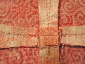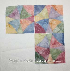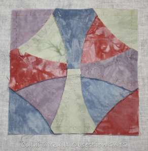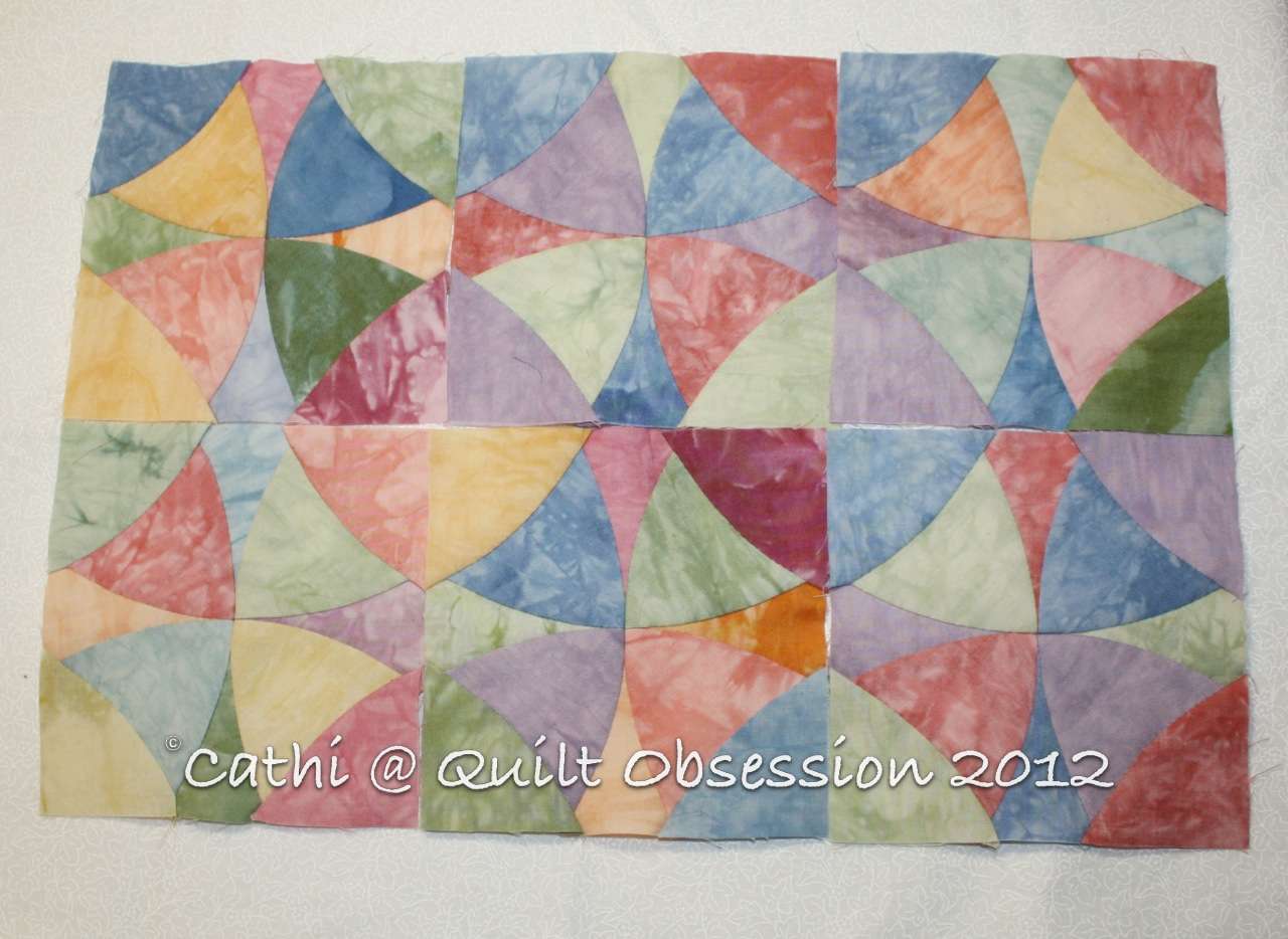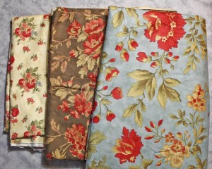 The fabrics I’m thinking about for the winding ways idea in the picture above remind me, to a degree, of a chintz couch she has but they are more subdued than the floral and green in the pickle dish blocks. Any thoughts on this are more than welcome.
