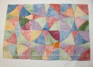 The change in plans? My aunt’s birthday is coming up in August, at which time she will be 90. There will be a party for her and I’ve decided to make her a lap quilt. She’s an amazing lady, sharp as can be and funny. I have some absolutely marvelous memories of playing double solitaire with her in the summers at a cottage. The two of us would end up in fits of laughter as we tried to be the first to go out and win those games.