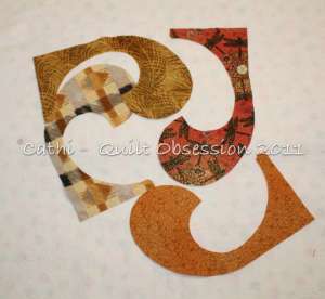 Much as I’m trying to concentrate on just one project right now, I can’t resist these Contented Kitty, aka Yin Yang, blocks. They are incredibly satisfying to put together and so quick to stitch. While I want to get the Contented Kitty quilt done fairly quickly, I’m contemplating doing some of the blocks in my favourite shabby chic fabrics. It’s so much fun to see how different they look when other fabrics are used. Then I keep thinking that they’d be amazing done in a variety of batiks and hand-dyed fabrics.